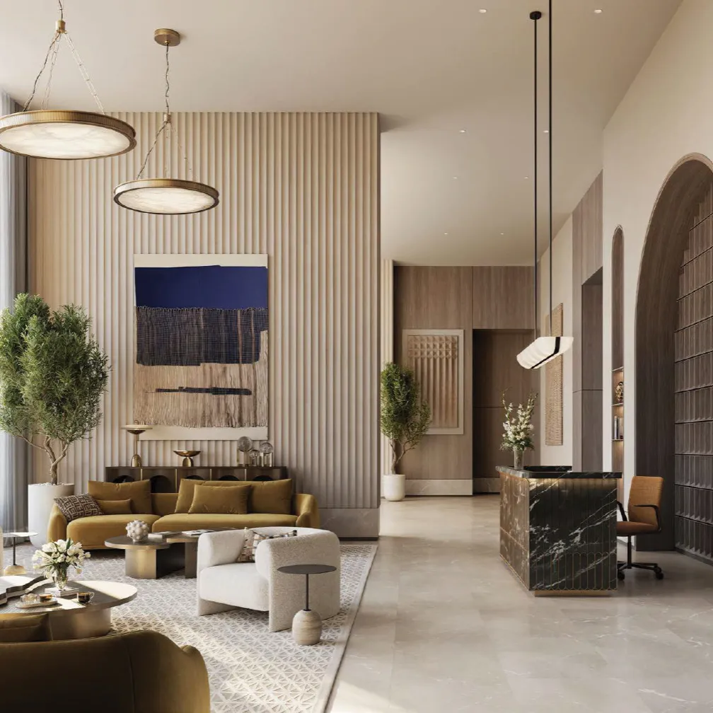 Adding a new architectural gem by Emaar properties, Lyvia by Palace at Dubai Creek Harbour. Located within the Green Gate District at Dubai Creek, this off-plan project in Dubai features an exquisite collection of 1-, 2-, and 3-bedroom apartments and 3-bedroom townhouses. This off-plan property by Emaar Properties is perfectly suited for people who value comfort, convenience, and natural peace. This residential development features high-end furniture in neutral color tones, creating a sense of peace and serenity for its residents.